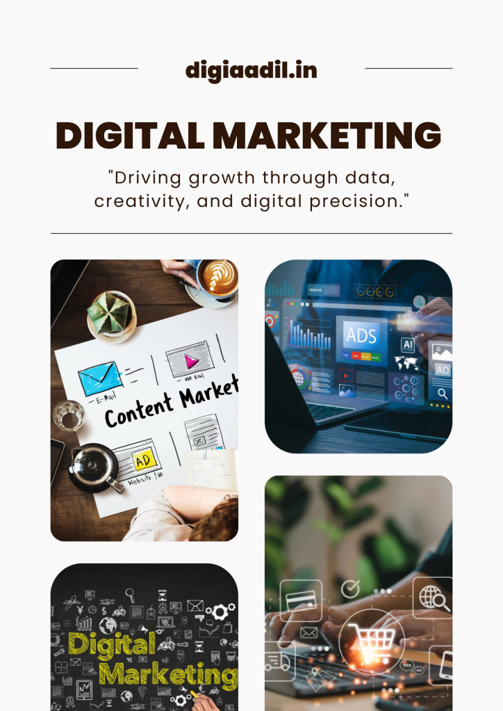 At Digiaadil.in, we turn clicks into customers. From performance-driven SEO to ROI-focused ad campaigns, our digital marketing solutions are tailored to elevate your brand and boost your bottom line. Let’s grow your business, the digital way.